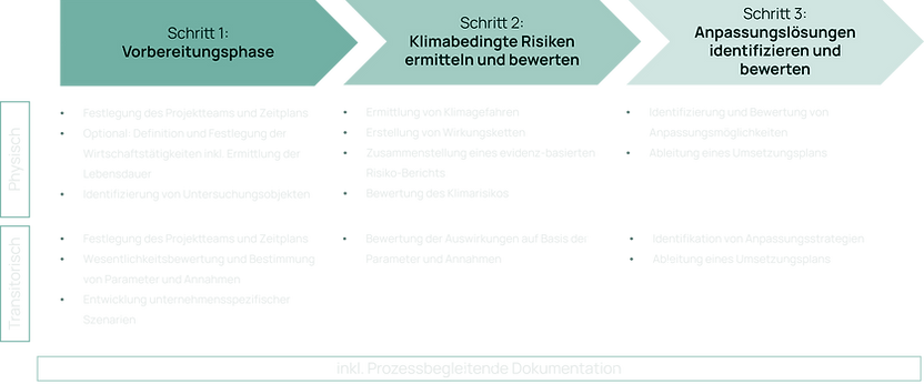 Wir bieten Ihnen eine maßgeschneiderte Klimarisikoanalyse, die mit der Betrachtung von transitorischen Risiken, weit über physische Risiken hinausgeht. Wir betrachten das gesamte Umfeld Ihres Unternehmens – strategisch, wirtschaftlich und regulatorisch. Für Sie bedeutet das: Klarheit, Sicherheit und echte Entscheidungshilfen.